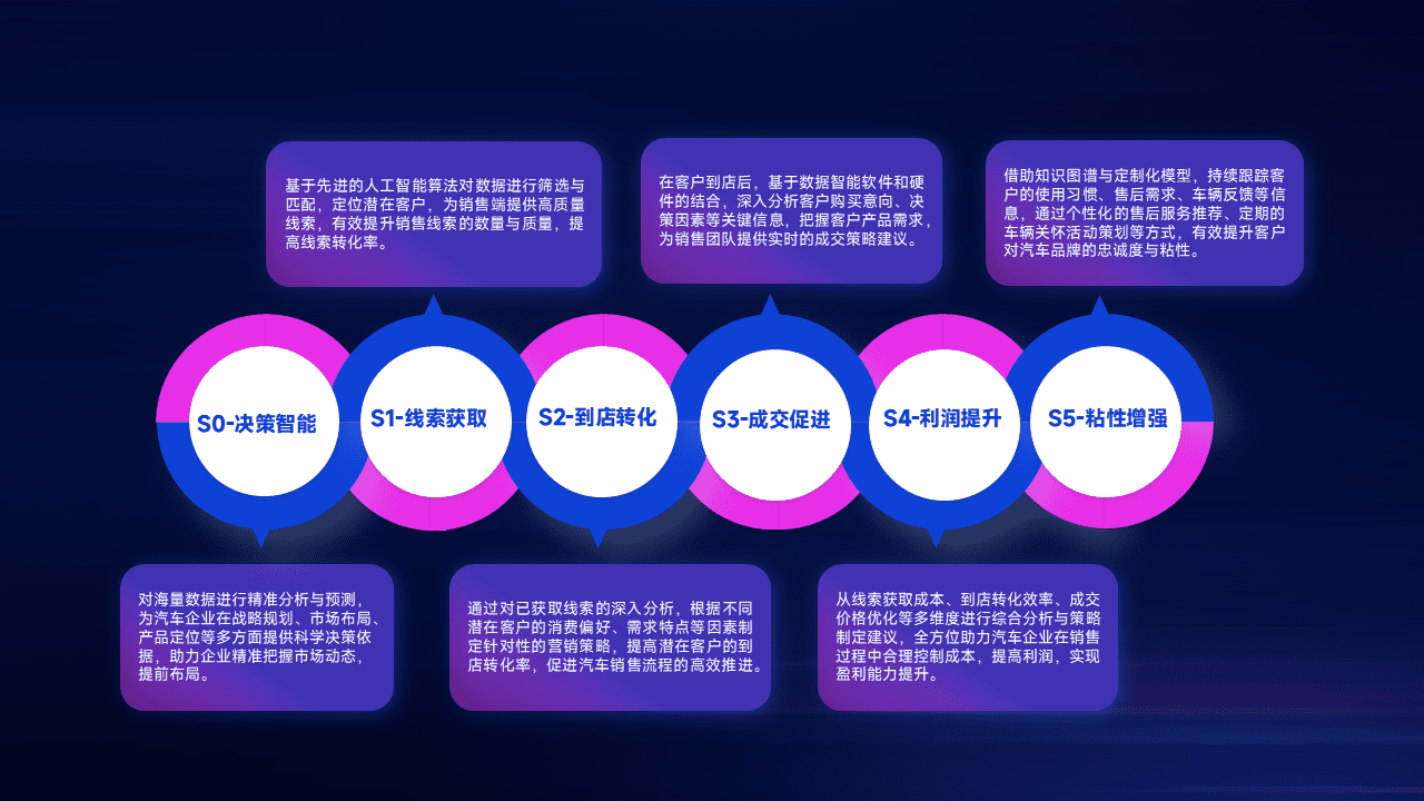 通过拓宽潜在客户来源、、优化线索分配并提高到店转化率,,,,以增强销售效率。。。。同时,,,利用线索数据不断优化分析模型,,,,有效提升转化率,,,,扩大营销影响力。。。